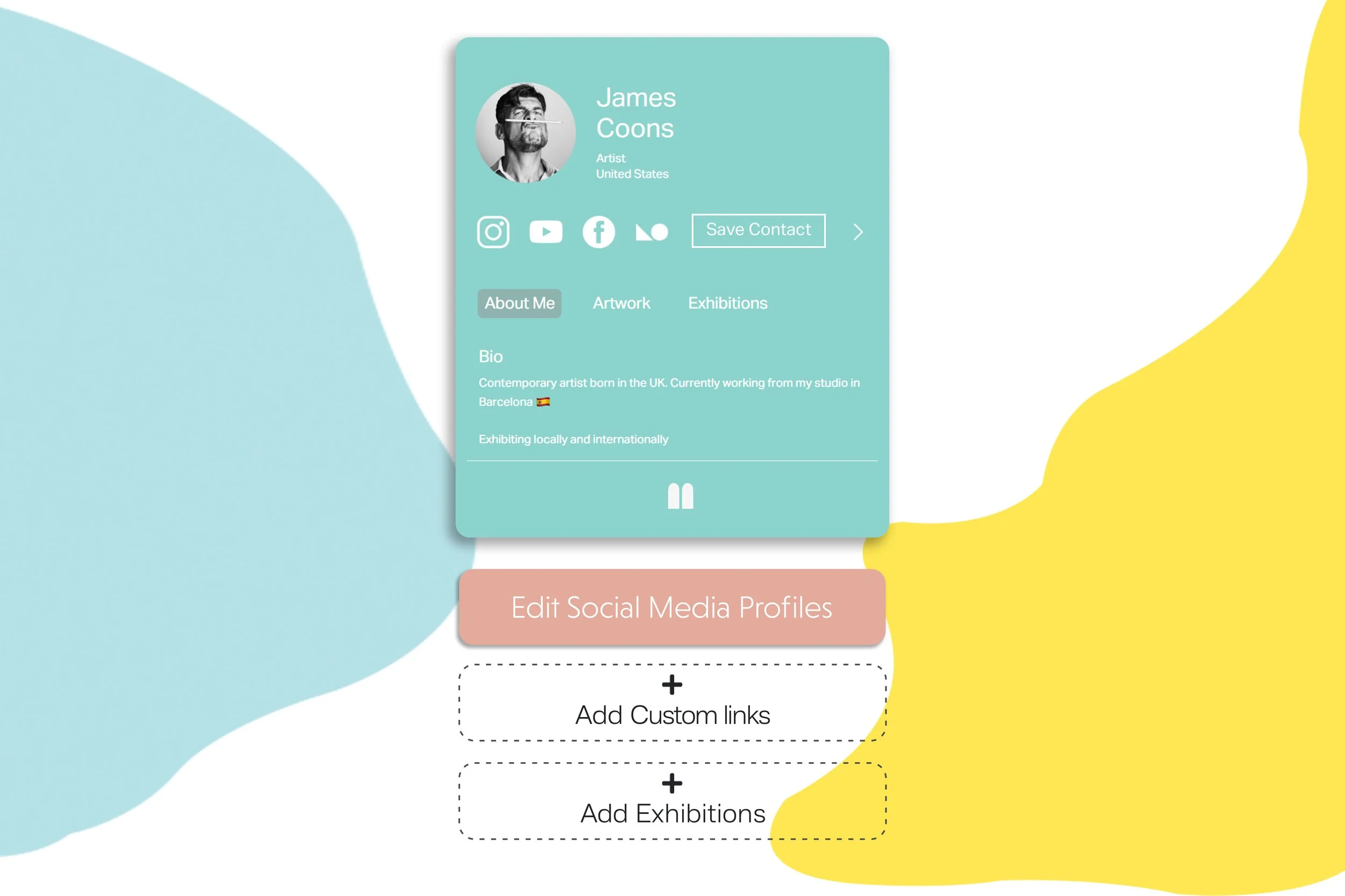 Create a professional digital profile while linking your art portfolio and socials to effortlessly build your artist brand - all in one place.